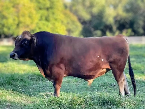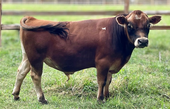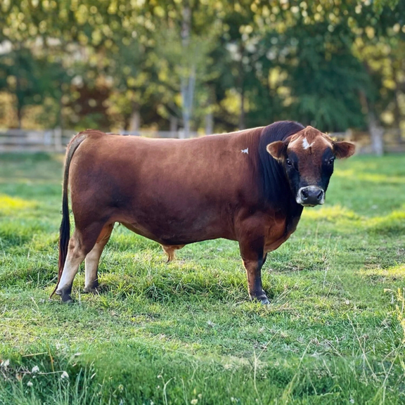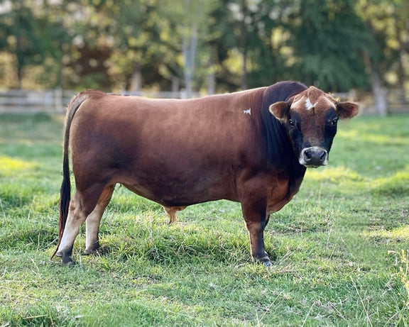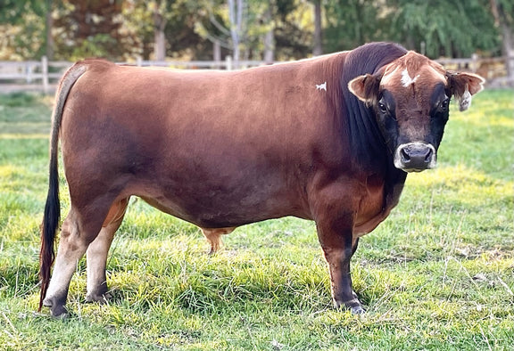 Colby Jack is a strong-built, Mini Jersey bull—100% PJA and A2/A2. He’s a beautiful red fawn with a few white stars, giving him that classic, eye-catching look. Known for excellent fertility and a calm, confident demeanor, Colby Jack passes on strong genetics and good structure to his calves. He’s the kind of bull that adds style and strength to any mini Jersey program.